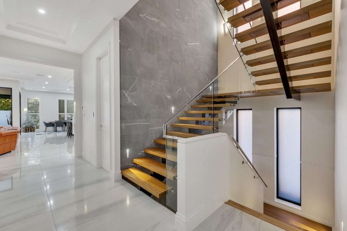 Spread across three levels, the home combines beauty with practicality, featuring a lift for easy access. A striking open timber staircase set against stone accents serves as a central feature. Designed for both entertaining and everyday living, the home offers generous space, including a rare six-car garage on the lower level—perfect for collectors or large families. This exceptional residence stands proudly in one of North Adelaide’s most sought-after locations.