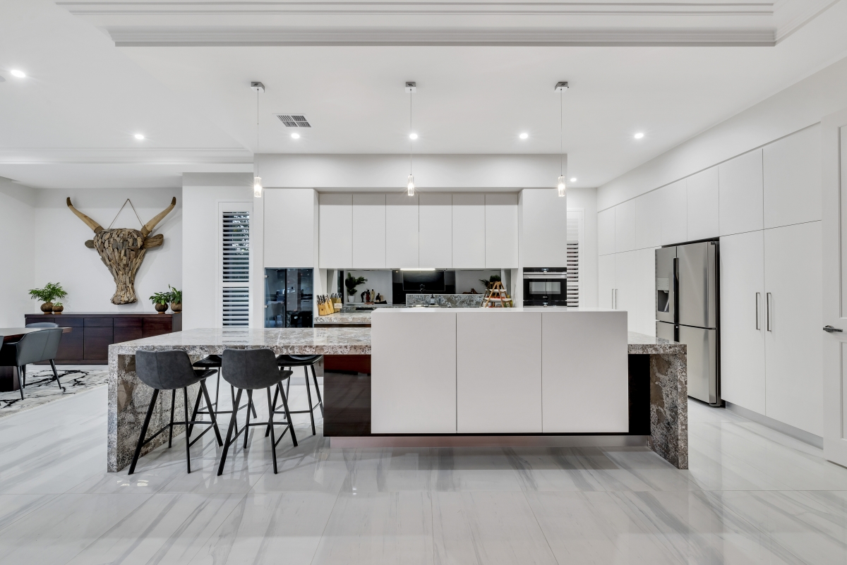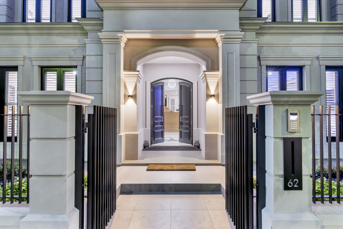 This grand North Adelaide residence blends classic Georgian architecture with modern touches. The impressive double entry doors open to a spacious, elegant interior, while a large balcony overlooking the parklands creates a seamless connection between indoor and outdoor spaces. Carefully crafted stone walls enhance the home’s stately charm, and its symmetrical design reflects timeless style.